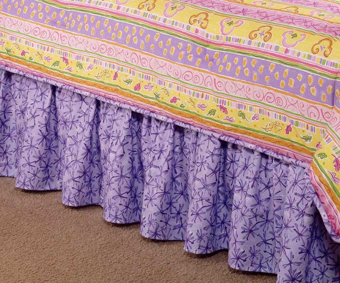 Full size bedskirt is made to 150% fullness to hang perfectly on any bed. Has a 15" drop with split corners.