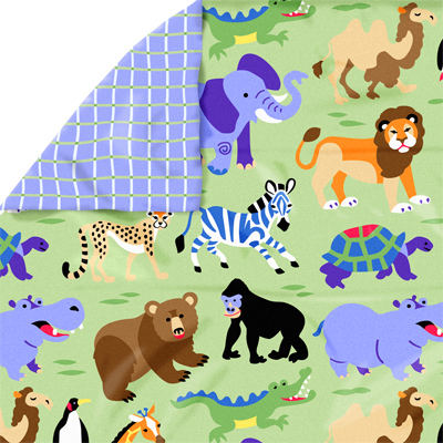Bright colors and a menagerie of adorable animals inhabit this "wild" comforter. Jungle favorites like lions, bears, elephants, giraffes, and so many more roam on a scenic green background. The reverse is a coordinating madras plaid.